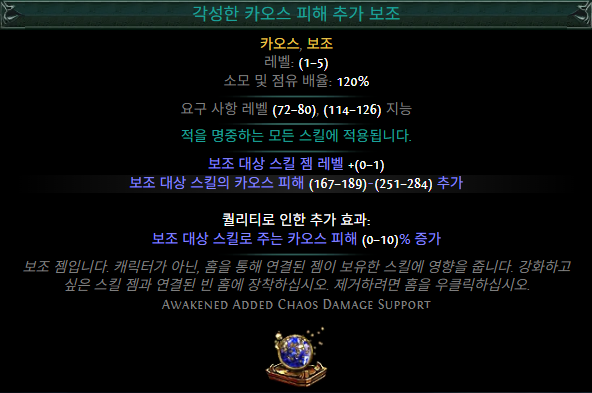 각성 젬 5레벨 시 189~284 카오스 피해 추가
