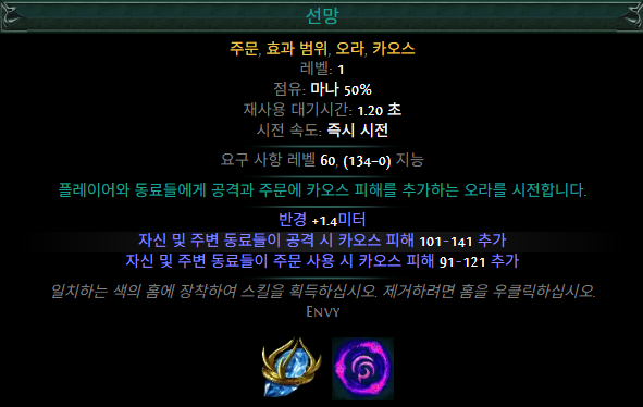 선망은 카오스 피해를 추가하는 오라입니다.