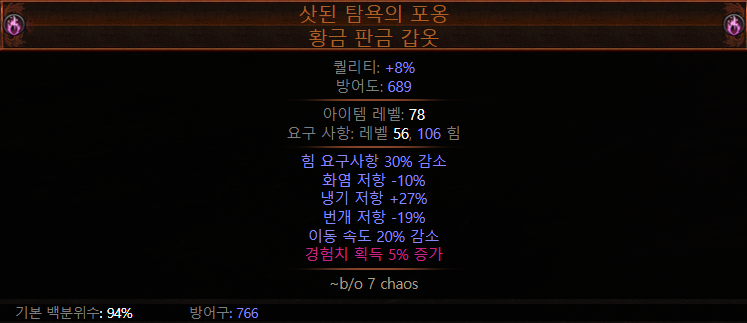 - 카오스 저항 60% 이상, 생명력 3000 이상 준비한다. (블럭, 모원저까지 있으면 좋음)