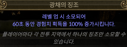 광채의 징조는 소모품으로 60초간 경험치 획득을 100% 증가시켜줍니다.