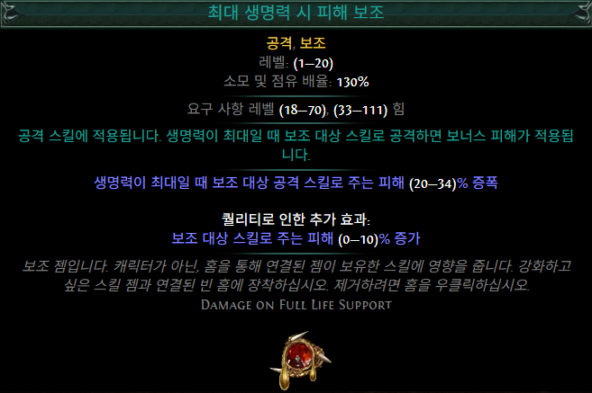최대 생명력 시 피해 보조를 추천드리는 이유는 타락을 발라도 가격차이가 크지 않으며